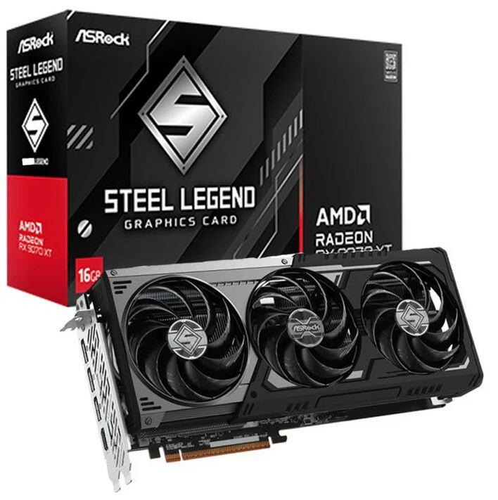 الرئيسيةASRock AMD Radeon RX 9070 XT Steel Legend 16GB GDDR6 Gaming Graphics CardASRock AMD Radeon RX 9070 XT Steel Legend 16GB GDDR6 Gaming Graphics CardالوصفIntegrated ARGB LEDs with Polychrome SYNC supportTriple fan design for optimized coolingStylish metal backplate and reinforced metal frameV-shaped fins and air vents for enhanced airflow